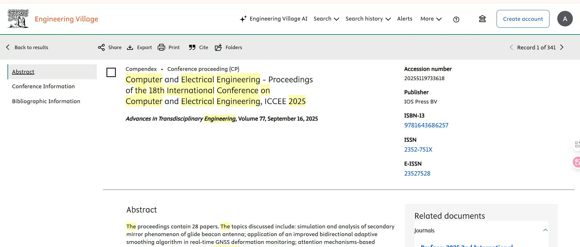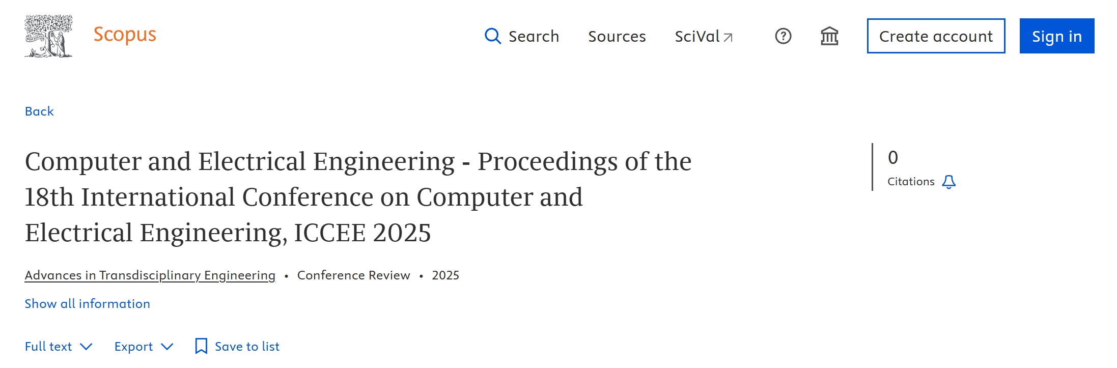 ● Proceedings of ICCEE 2025 (Click), indexed by EI Compendex (Click) and Scopus (Click).
